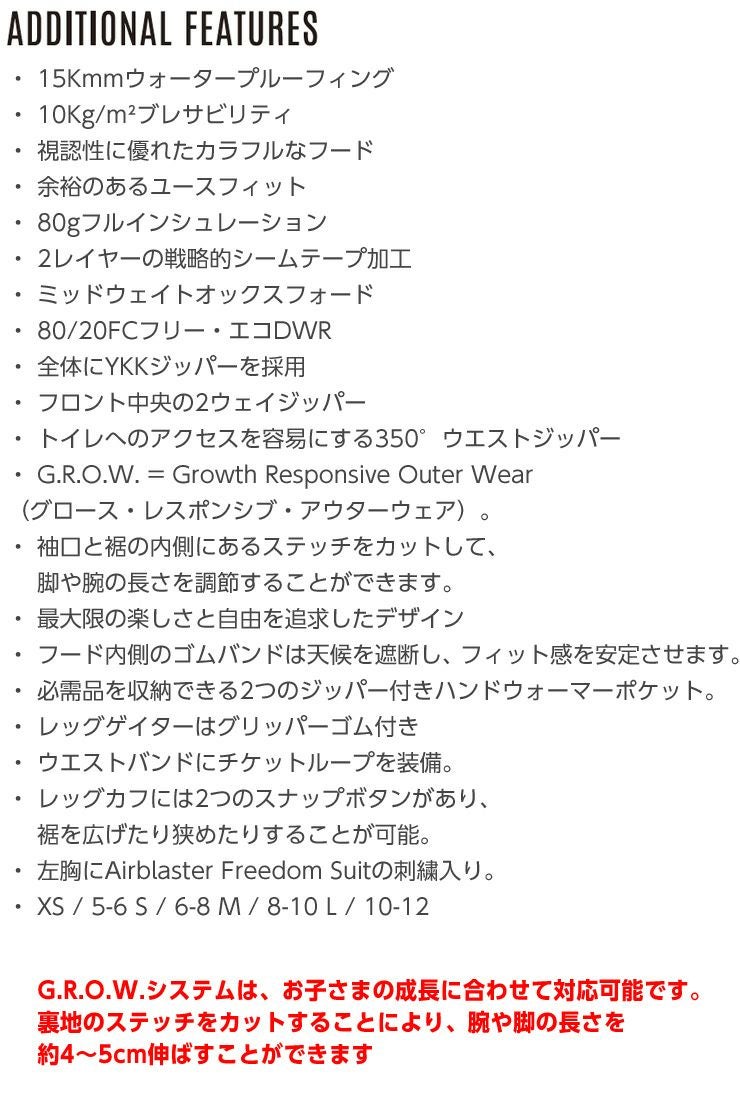 23-24 AIRBLASTER エアブラスター Youth Freedom Suit フリーダムスーツ スノーボード 雪遊び キッズ スキー ジュニア 子供 つなぎ