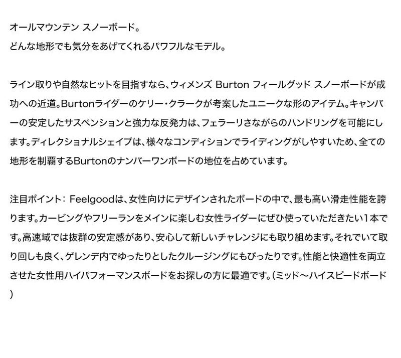 【無料ワックスサービス有】25-26 2026 BURTON バートン Women's Feelgood ウーメンズフィールグッド スノーボード 板 ハードギア