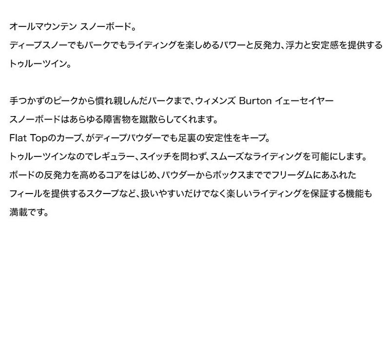 【無料ワックスサービス有】25-26 2026 BURTON バートン Women's Yeasayer ウーメンズイェーセイヤー スノーボード 板 ハードギア