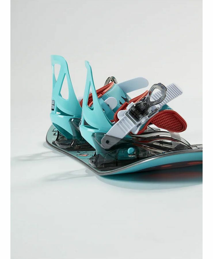 調節可能なバインディングは、最初から初級者に適したスタンスで取付けてあるので、そのまますぐに滑ることができます。