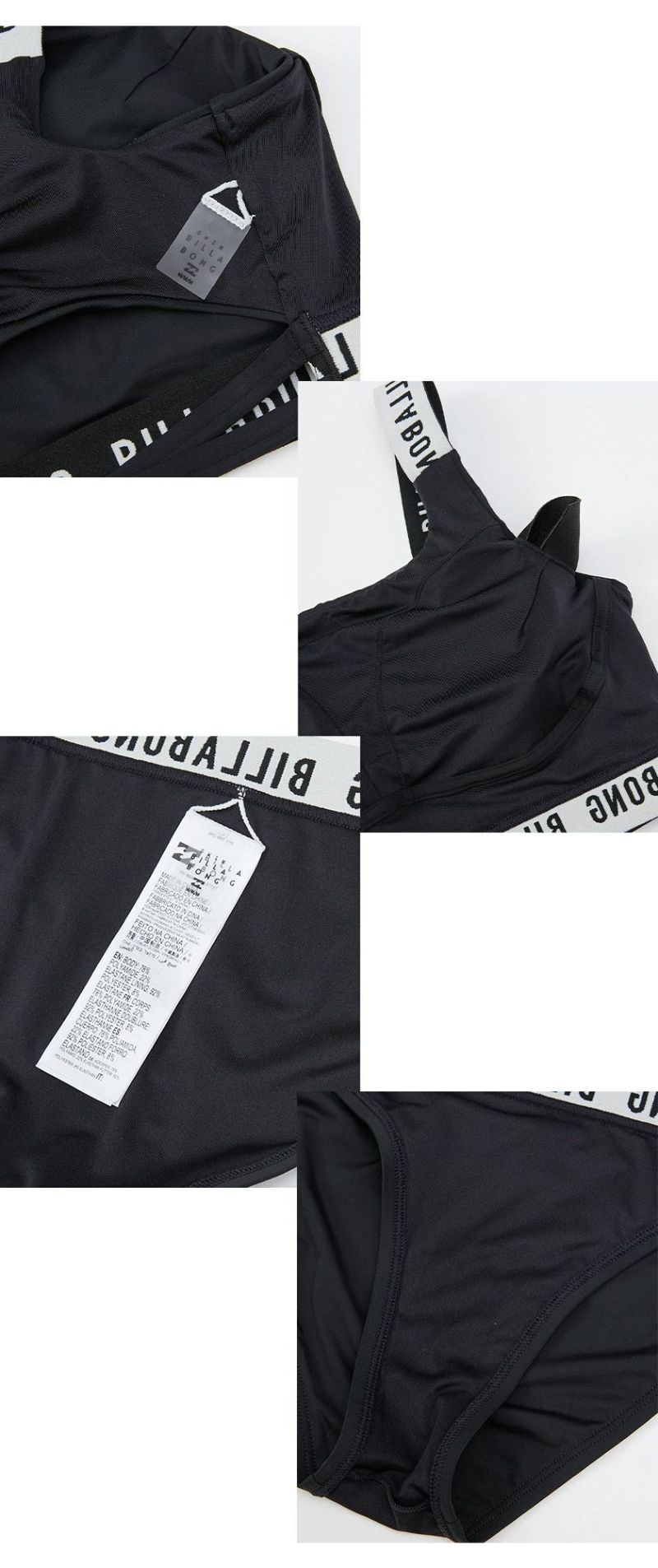 ショルダーストラップやアンダーバスト、ウエストに施されたロゴ入りジャガードバンドがポイント。