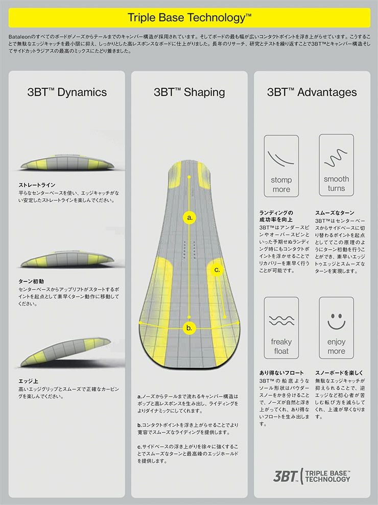 柔らかいフレックスと3BTがパークからパウダーまでシームレスに対応してくれます。