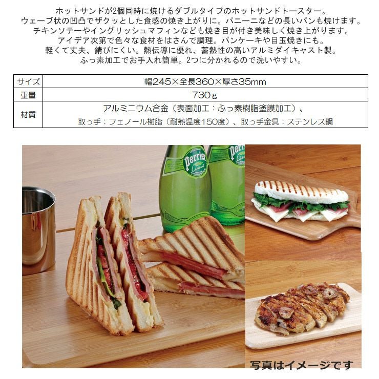 ホットサンドが2個同時に焼けるダブルタイプのホットサンドトースター。