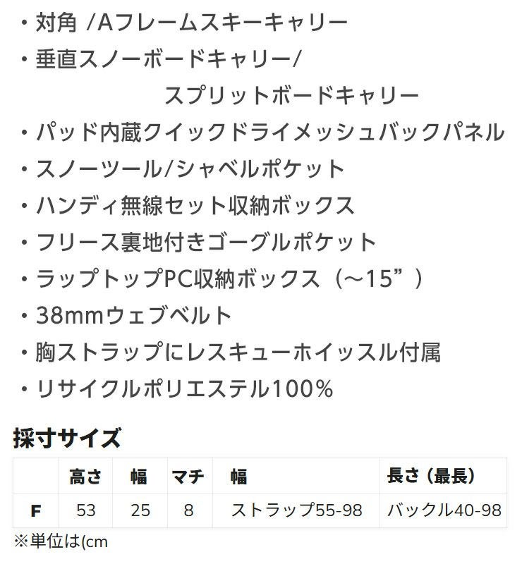 25-26 正規品 ゲレンデでも背負いやすい小型バックパック