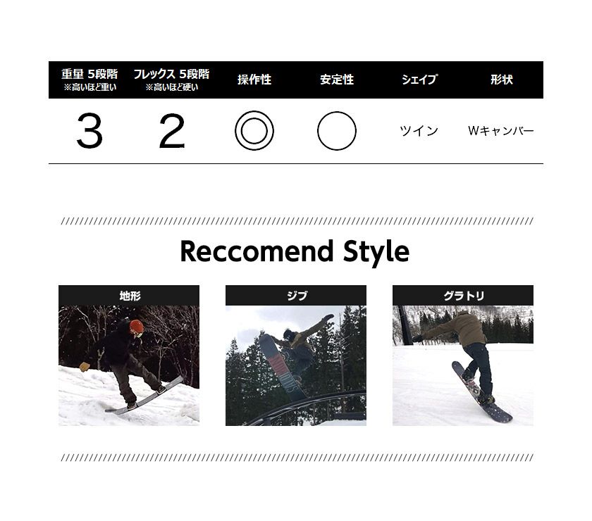 TNT Rはグラトリに最も重要なボードの「しなり」を重点に、グラトリ初心者でも板を簡単にしならせることが出来るよう設計されています。ただ柔らかいだけではなく、ボードのセンターが良くしなり、しなった後しっかり止まってくれるのでプレスの安定感は抜群です。更にWキャンバーの欠点である真ん中のバネが失われるのを、中心にハニカムバーというバネを埋め込むことで克服しました。