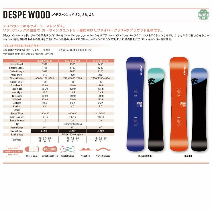 【無料ワックスサービス有】25-26 2026 GRAY グレイ DESPE WOOD ジュニア ユース スノーボード キャンバー
