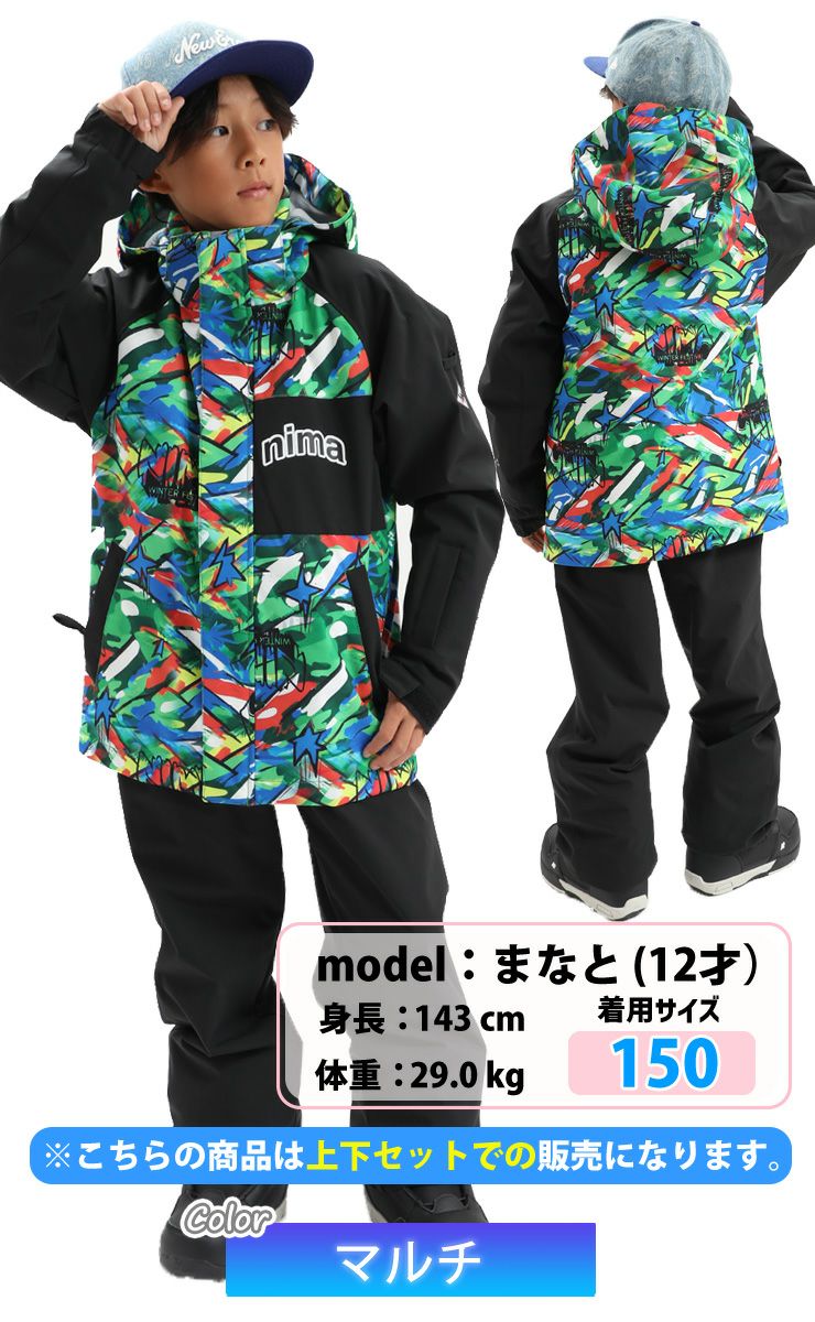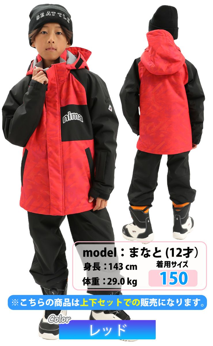 25-26 nima ニーマ スノーボード ウェア キッズ ジュニア JR-1605 上下セット スキーウェア サイズ調整付き