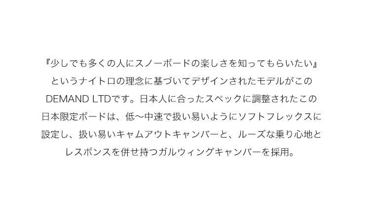 【無料ワックスサービス有】24-25 2025 NITRO ナイトロ DEMAND LTD CAM-OUT デマンド カービング キッカー ジブ スノーボード 板 メンズ レディース ユニセックス ハードギア
