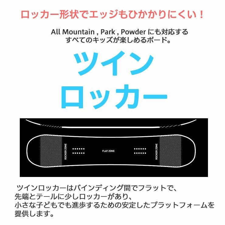 小さなキッズが上達するのにぴったりな安定性のあるツインロッカーシェイプ。