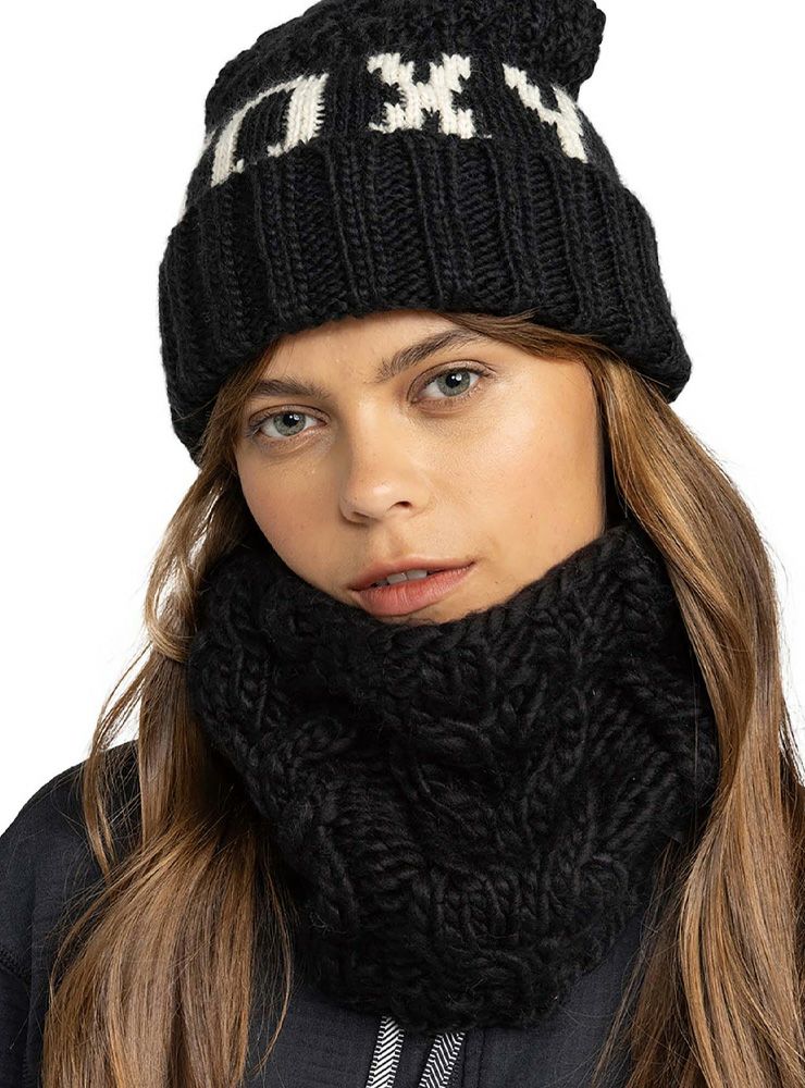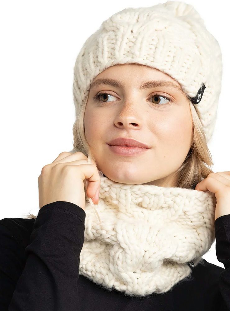 ざっくりとした ケーブルニットの ネックウォーマーは、 ビーニーとお揃いで着用可能。