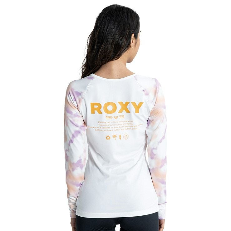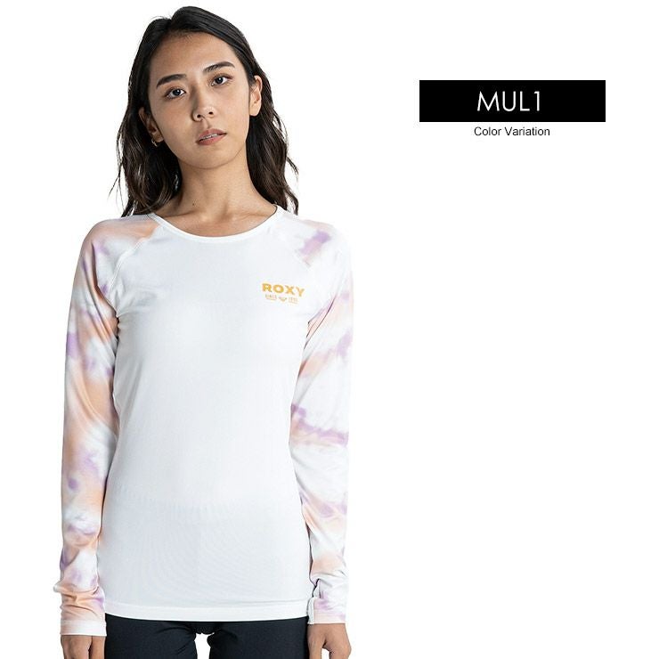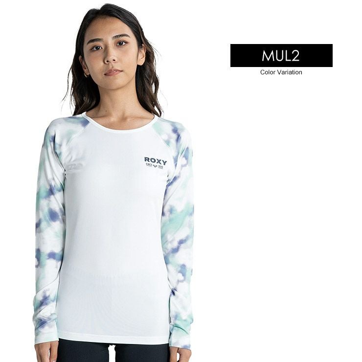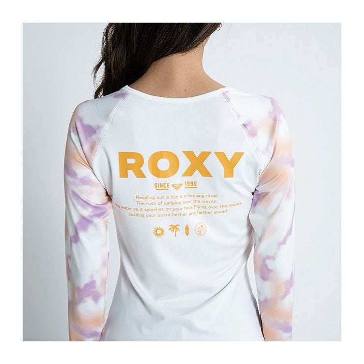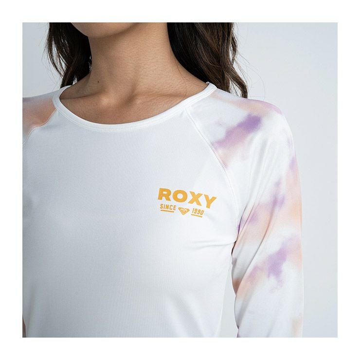 やわらかい生地を使用した、ラッシュガードの新デザインが登場。クルーネックのカバーアップラッシュガードは、タイトなシルエットですっきり見えを叶えます。ラグランスリーブにタイダイプリントを施しました。UVカット機能を備え、さらにサムホール付きロングスリーブなのでカバー力が高いのも魅力。胸元とバックにはROXYのロゴをあしらいました。