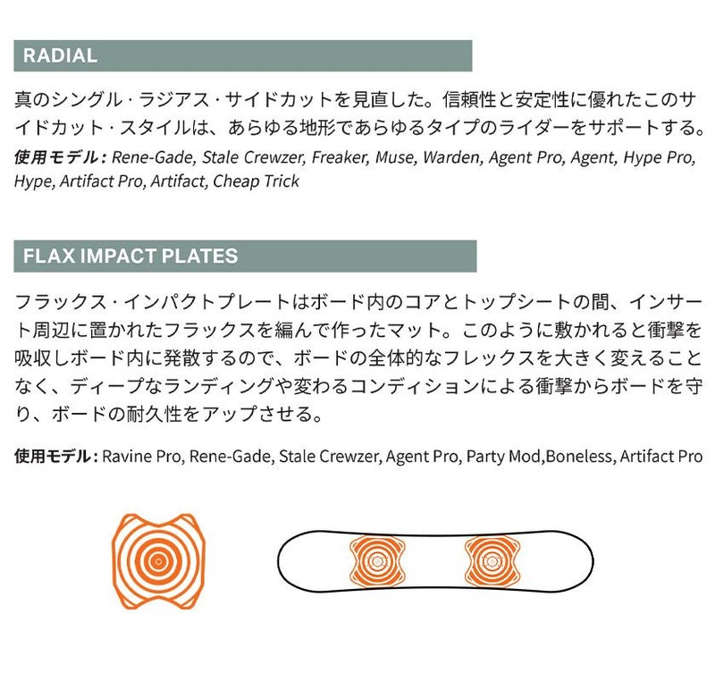 反発と安定感のバランスが良く、ノーズとテールにはカーボンホットロッドを内蔵し、地形遊びやカービングも楽しめる超オールラウンドボードです。