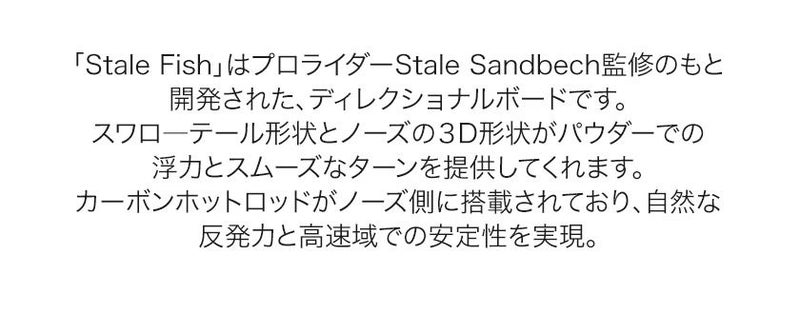 「Stale Fish」はプロライダーStale Sandbech監修のもと開発された、ディレクショナルボードです。