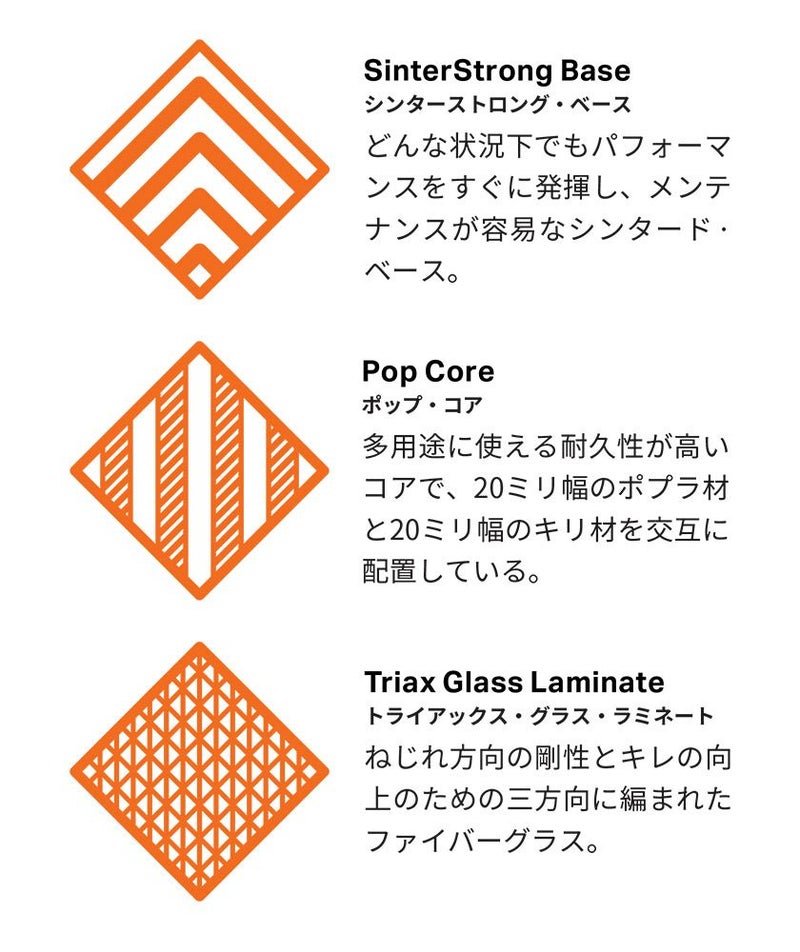 スワロ―テール形状とノーズの3D形状がパウダーでの浮力とスムーズなターンを提供してくれます。