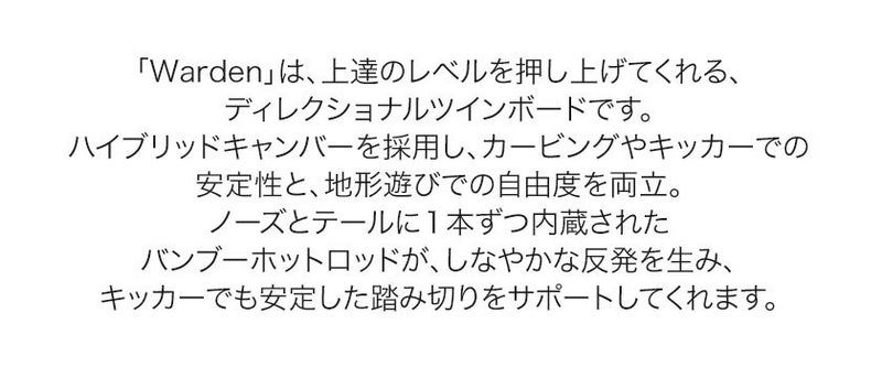 「Warden」は、上達のレベルを押し上げてくれる、ディレクショナルツインボードです。