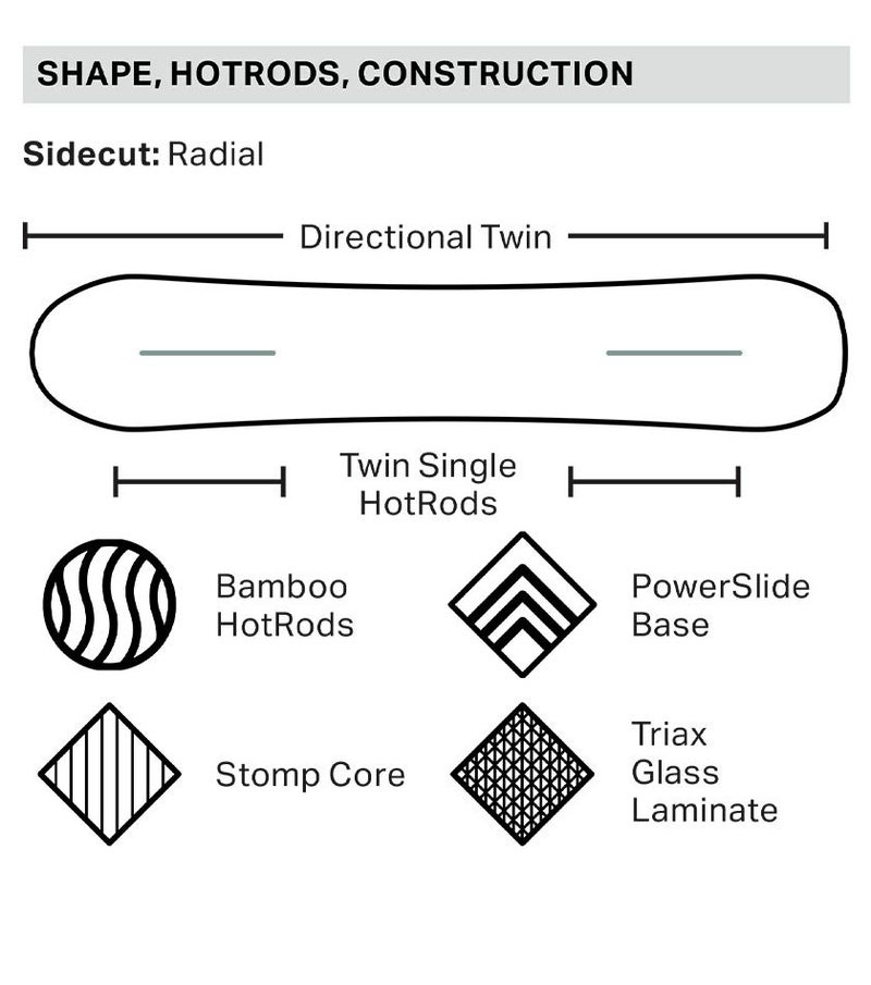 ノーズとテールに1本ずつ内蔵されたバンブーホットロッドが、しなやかな反発を生み、キッカーでも安定した踏み切りをサポートしてくれます。