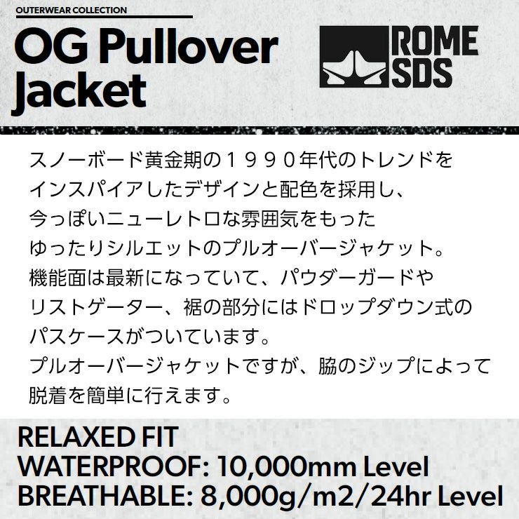正規品 23-24 ROME SDS ローム OG PULLOVER JACKET プルオーバー スノーボードジャケット メンズ スノーボード スキー ウェア 大人ボードウェア