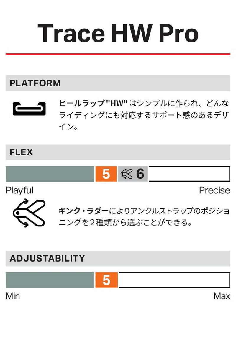 ROMEのTRACE HW PROは、オールマウンテン向けの高性能ビンディングで、快適性と調整性を兼ね備えています。