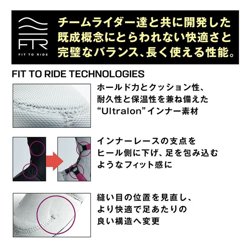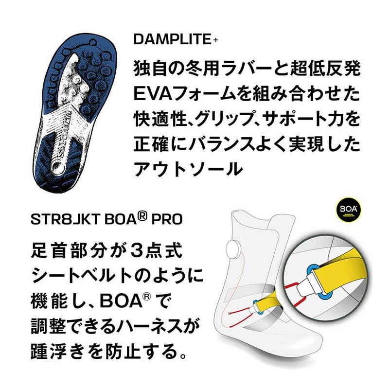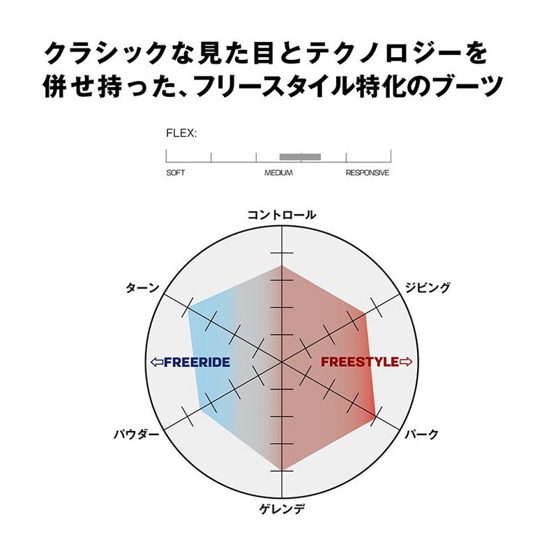 正確なフィット感とプログレッシブフレックスを提供するDialogue Lace SJ BOAはフリースタイルなライディング性能に特化したブーツです。 ミッドフレックスと、BOAでフィット感を調節できるSTR8JKTハーネスが組み合わさり、踵が浮くのをおさえ、心地よい履き心地とフィット感を提供します。 フィットトゥライド構造を採用し、軽さと耐久性を両立し、圧倒的なグリップ力と衝撃吸収力を足元に提供します。