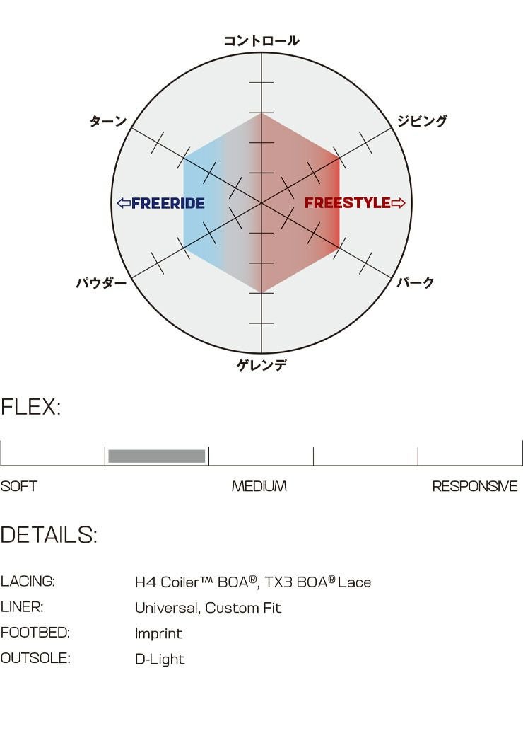 スニーカーにインスパイアされたD - L i g h tアウトソールを採用したこのブーツは、U l t r a l o nライナーがカスタマイズ可能なフィット感を提供する一方で、最高のボードフィールと足元の衝撃吸収性を提供します。
