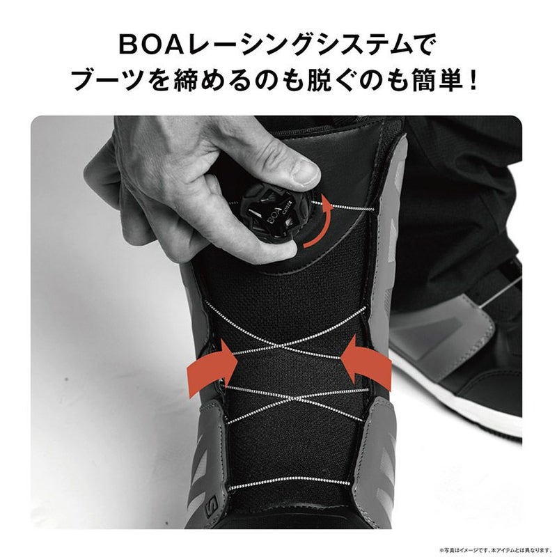 フィットトゥライド構造によって軽量性、快適性、耐久性が約束されている Pearl BOAは、手の届きやすさと万能性を両立させるために開発されました。 ウルトラロンライナーがフィット感を提供し、サロモンのスニーカーからインスピレーションを得たD-ライトアウトソールが足元に衝撃吸収力とボードとの一体感を提供します。