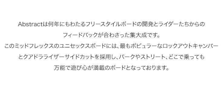 Abstractは何年にもわたるフリースタイルボードの開発とライダーたちからのフィードバックが合わさった集大成です。