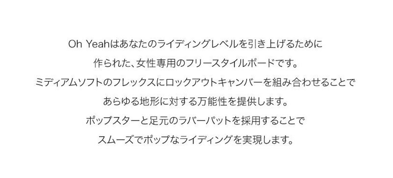 Oh Yeahはあなたのライディングレベルを引き上げるために作られた、女性専用のフリースタイルボードです。