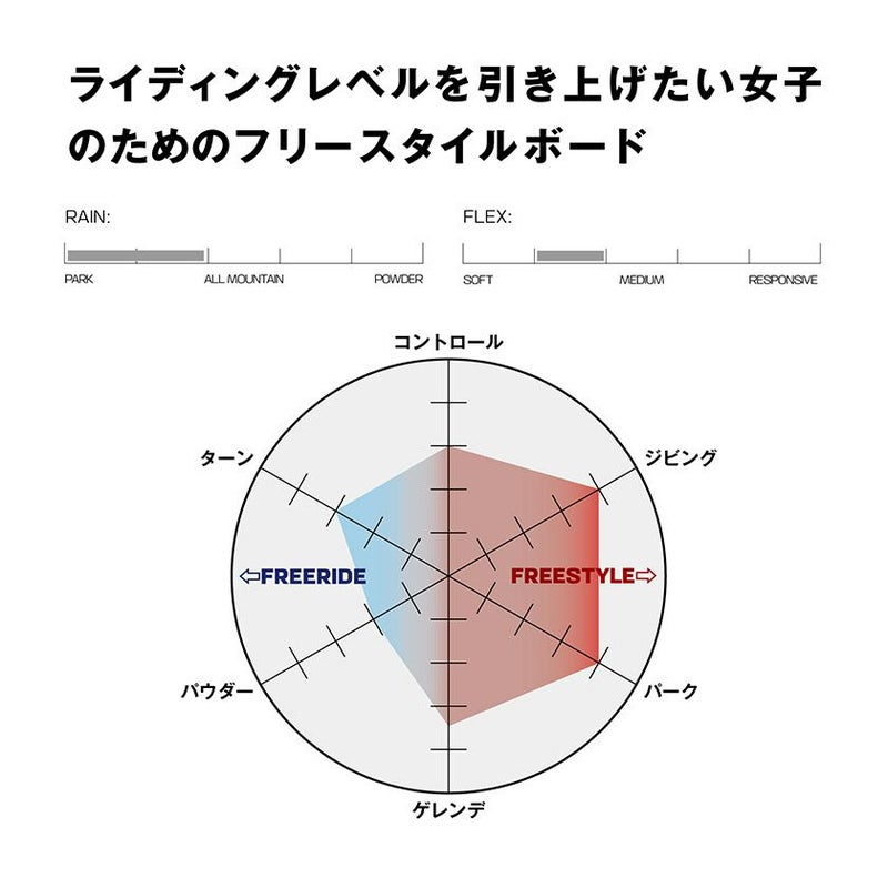 ミディアムソフトのフレックスにロックアウトキャンバーを組み合わせることであらゆる地形に対する万能性を提供します。