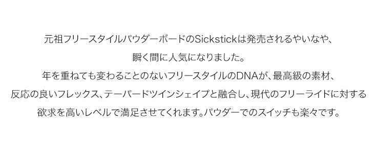 元祖フリースタイルパウダーボードのSickstickは発売されるやいなや、瞬く間に人気になりました。
