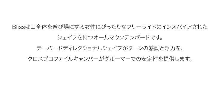 Blissは山全体を遊び場にする女性にぴったりなフリーライドにインスパイアされたシェイプを持つオールマウンテンボードです。