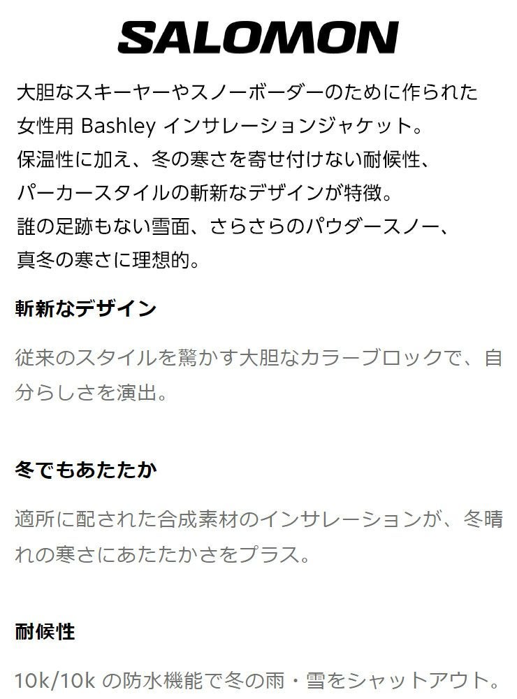 23-24 SALOMON サロモン BASHLEY PUFF JACKET W レディース スノージャケット スノーボード スキー ウェア
