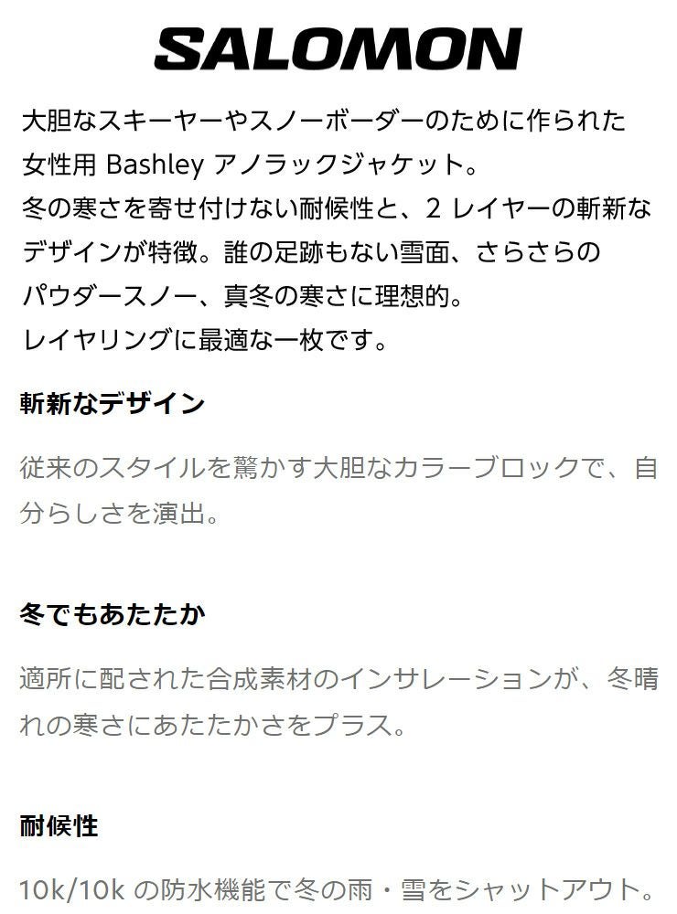 23-24 SALOMON サロモン BASHLEY ANORAK JACKET W レディース スノージャケット スノーボード スキー ウェア