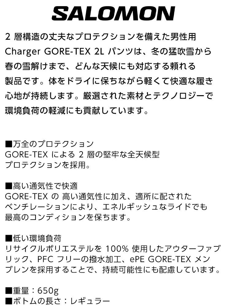 24-25 SALOMON サロモン CHARGER GORE-TEX 2L PANTS チャージャー ゴアテックス ツーレイヤーパンツ スノーボード スキー ウェア