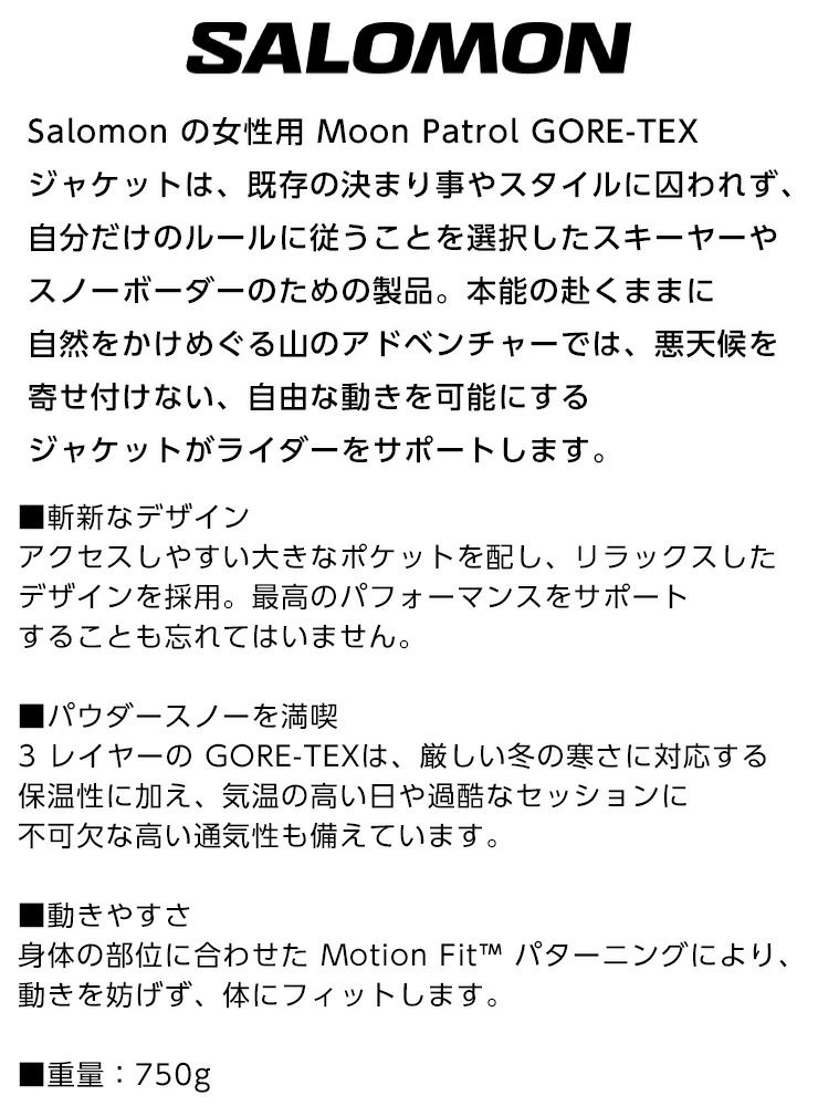 24-25 SALOMON サロモン MOON PATROL GORE-TEX JACKET W ムーンパトロール ゴアテックス ジャケット スノーボード スキー ウェア