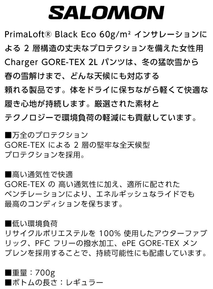 24-25 SALOMON サロモン CHARGER GORE-TEX 2L PANTS W チャージャー ゴアテックス ツーレイヤーパンツ スノーボード スキー ウェア