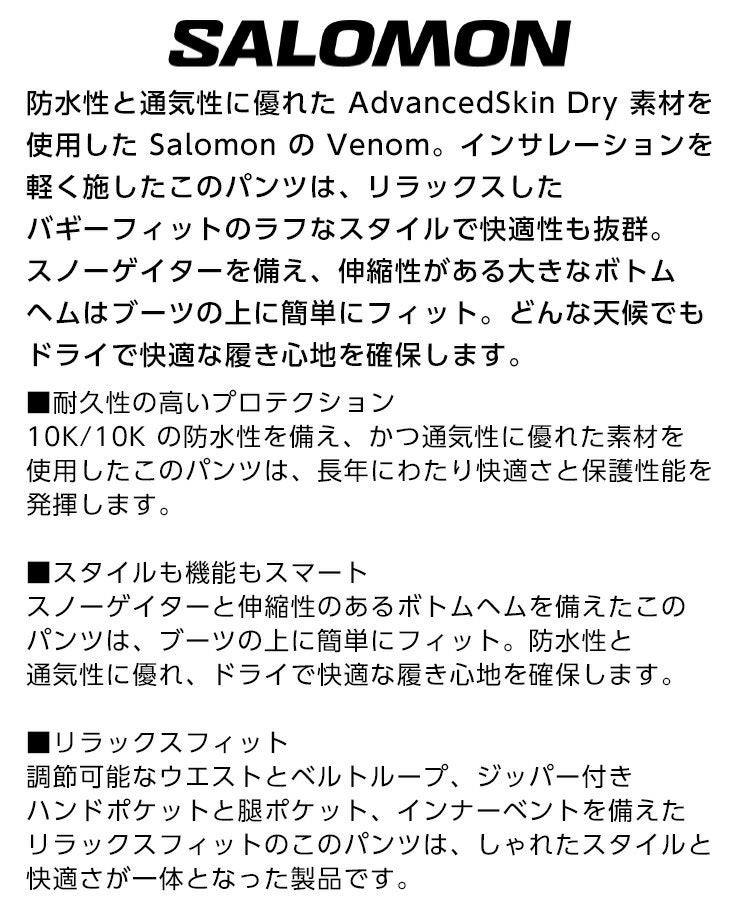 2026 SALOMON サロモン VENOM PANT ベノムパンツ スノーボード スキー パンツ ウェア LC2636800020