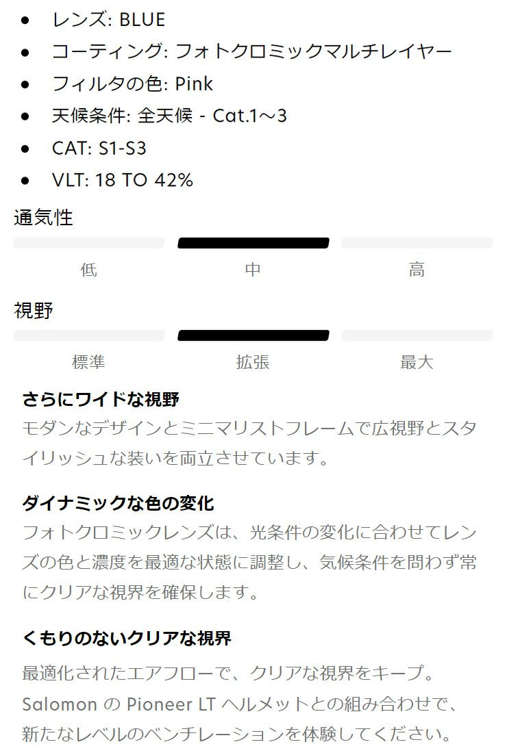 両立させた Salomon の S/VIEW ゴーグル。ミニマリストフレームが ワイドな視野を確保。