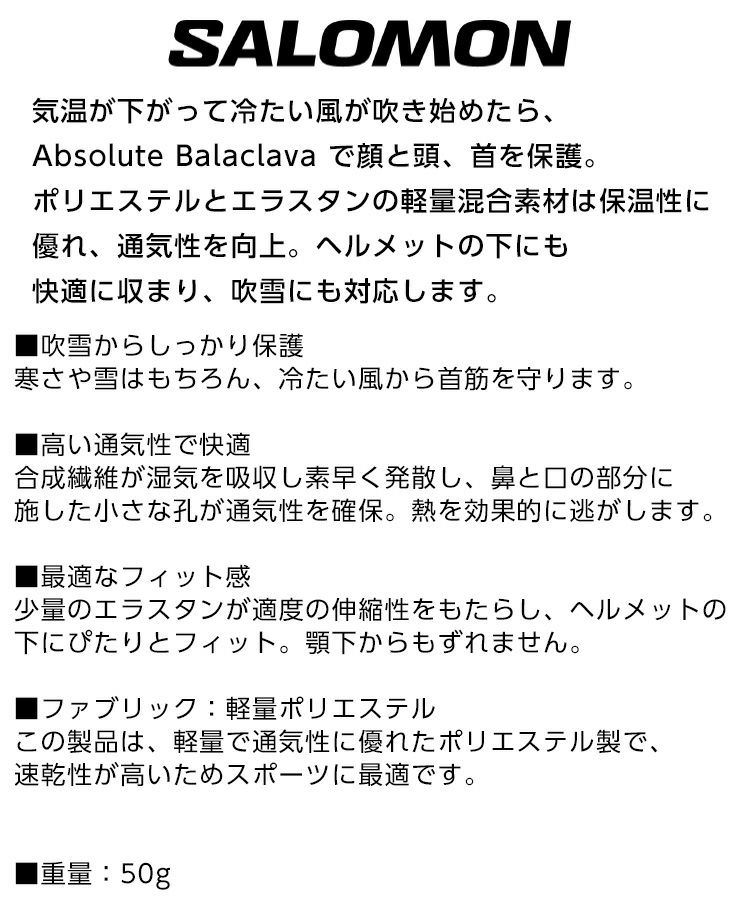 正規品 24-25 SALOMON サロモン ABSOLUTE BALACLAVA アブソリュート バラクラバ 防寒 バックカントリー LC2303400010