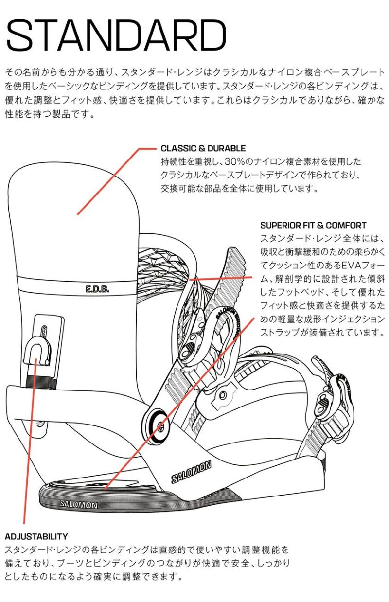 EDB ( Every Day Binding )はフィット感、機能性、耐久性に重きを置いた実用的なビンディングとして開発されました。