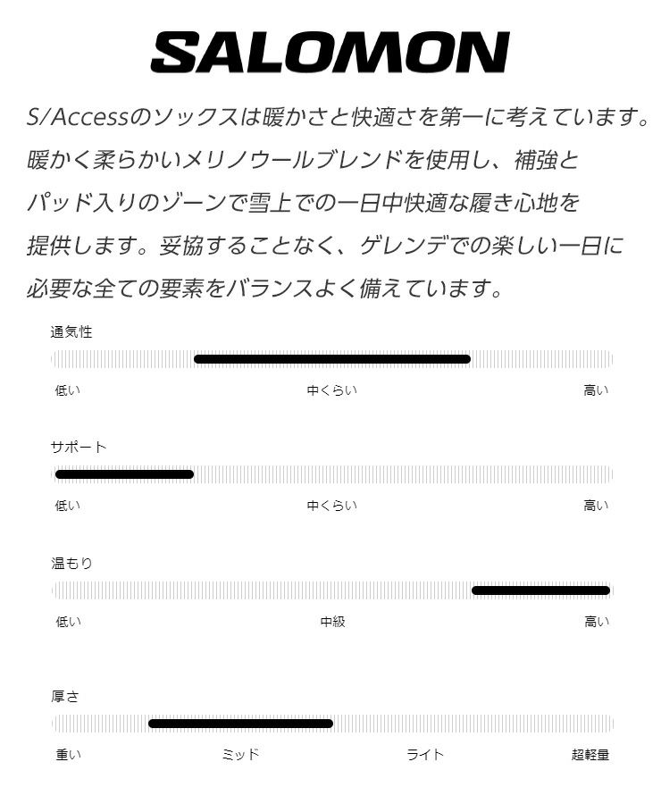 正規品 スノー用ソックス SALOMON サロモン S/ ACCESS 2-PACK アクセス ソックス 靴下 スノーボード スキー 通常販売価格 ¥ 5,500 のところ WEB価格 ¥ 4,400 税込 会員特別価格 ¥ 4,702 税込 在庫切れ カートに入れる お気に入りに登録する