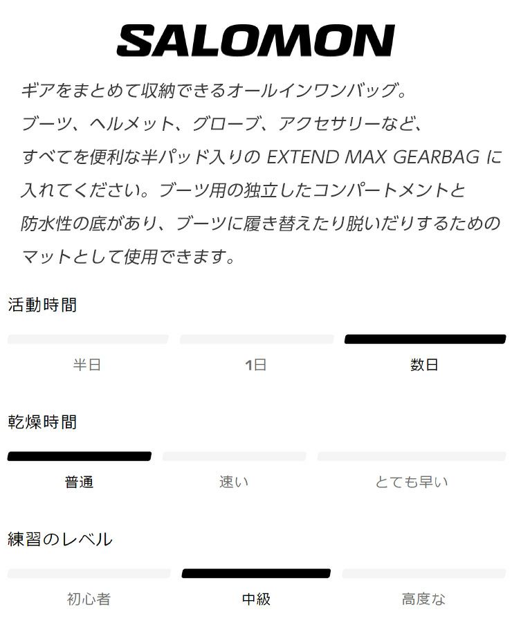 他の画像を見る 正規品 ギアをまとめて収納 SALOMON サロモン EXTEND MAX GEARBAG エクステンドギアバッグ スノーボード スキー 通常販売価格 ¥ 8,800 のところ WEB価格 ¥ 7,040 税込 会員特別価格 ¥ 7,524 税込 在庫切れ カートに入れる お気に入りに登録する