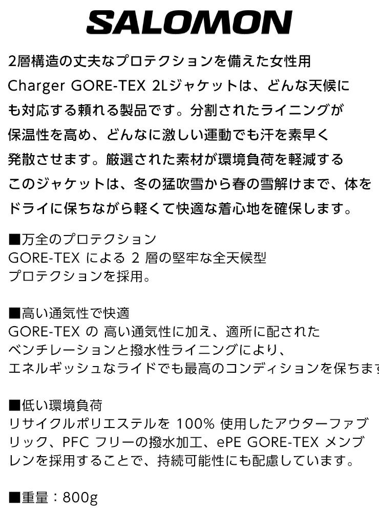 他の画像を見る 正規品 2025 レディース スノージャケット 24-25 SALOMON サロモン CHARGER 2L JACKET W チャージャー ツーレイヤー ゴアテックス ジャケット スノーボード スキー ウェア 通常販売価格 ¥ 66,000 のところ WEB価格 ¥ 52,800 税込 会員特別価格 ¥ 50,160 税込 在庫切れ カートに入れる お気に入りに登録する