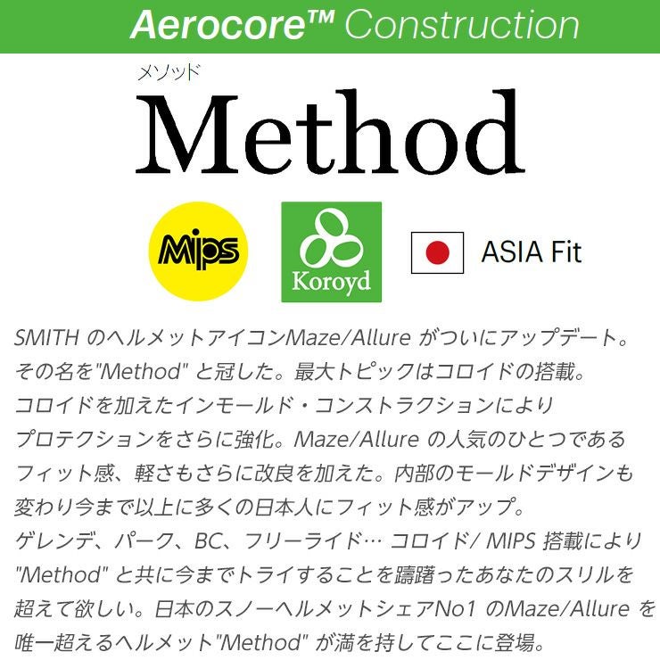 Maze/Allure を唯一超えるヘルメット'Method' が満を持してここに登場。