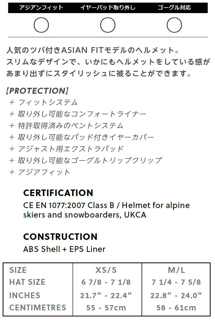 人気のツバ付きASIAN FITモデルのヘルメット。 スリムなデザインで、