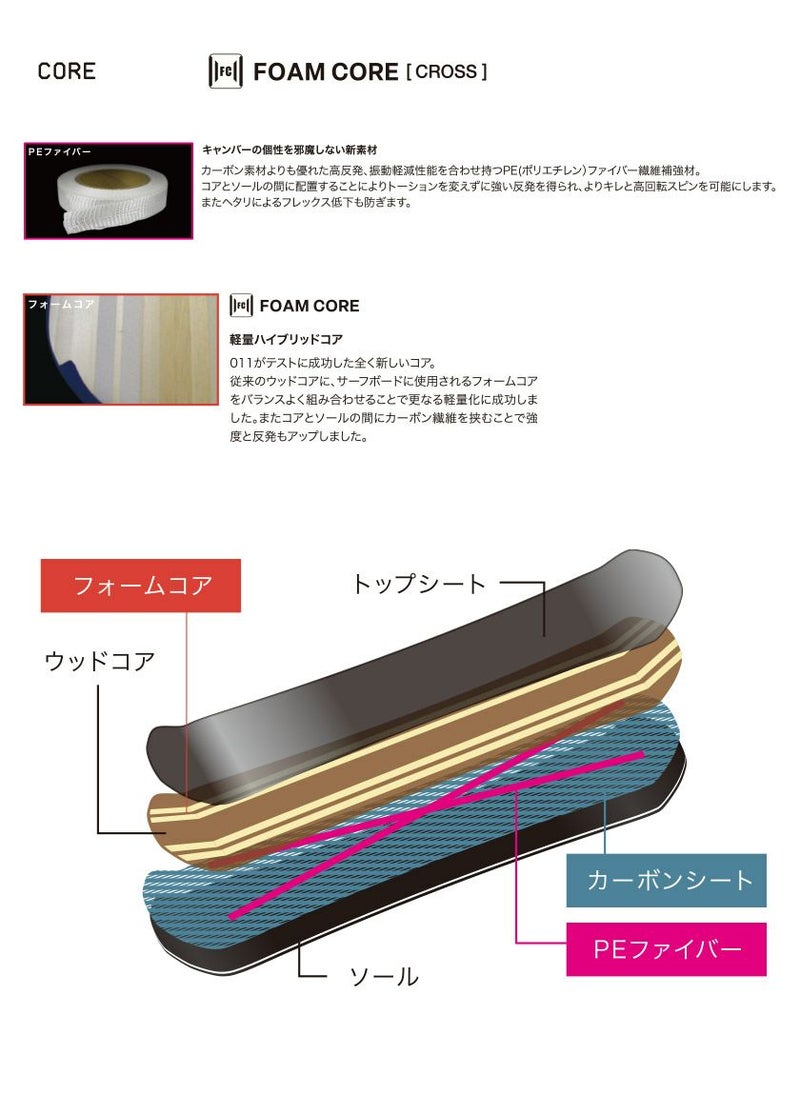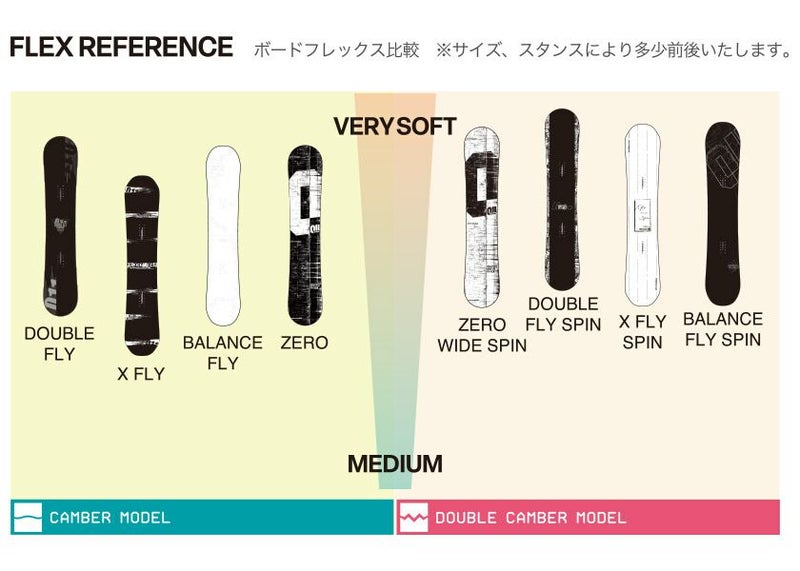 X FLY シリーズに搭載された軽さ、キレ、高さ、スタイルに浮遊感をプラスした国産最軽量ダブルキャンバーボードシリーズ。