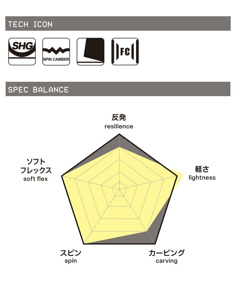アウトラインはDOUBLE FLYでもキャンバーとは違うエッジプレッシャーを軽減した乗り味。