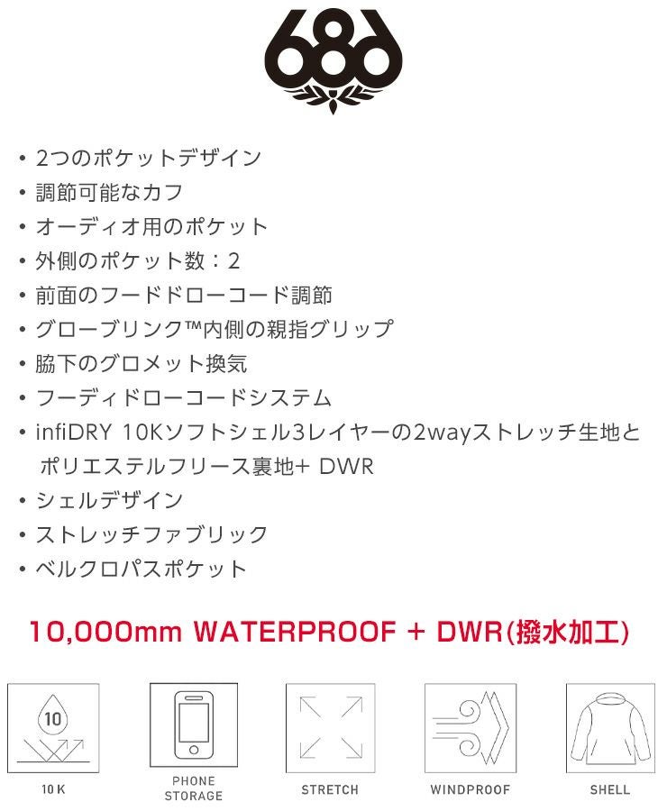 23-24 686 シックスエイトシックス WATERPROOF SLAPSHOT HOODY フーディー 撥水加工 パーカー