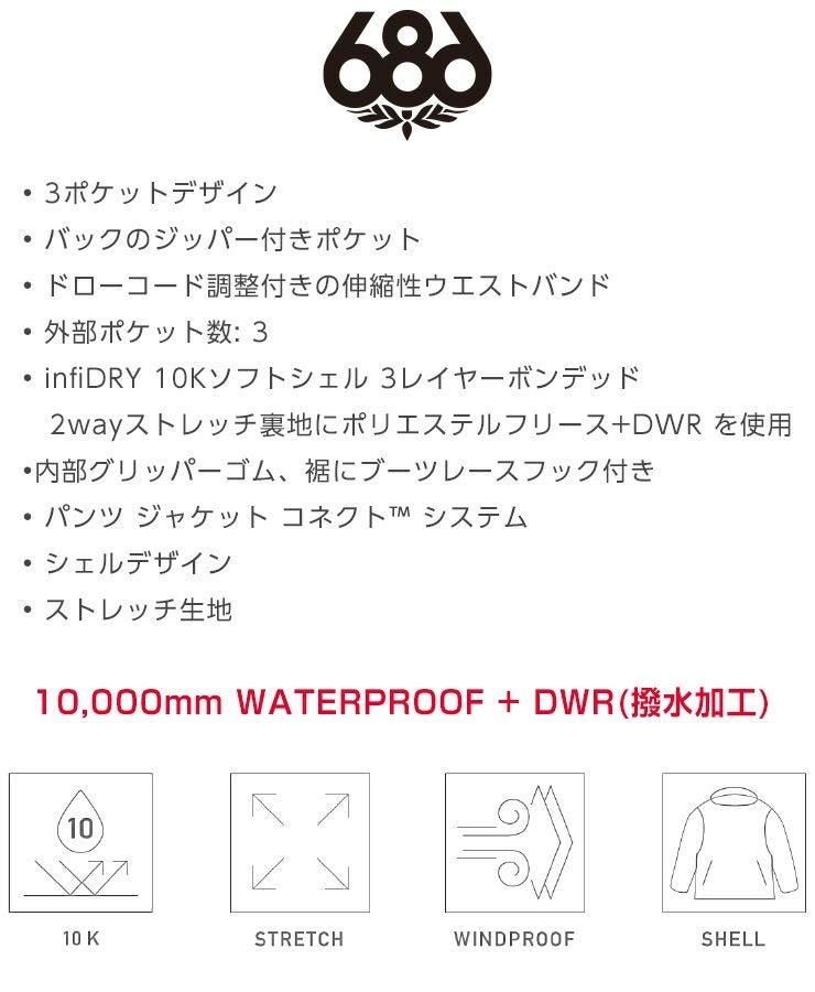 23-24 686 シックスエイトシックス WATERPROOF TRACK PANT TEENS パンツ スノーボード