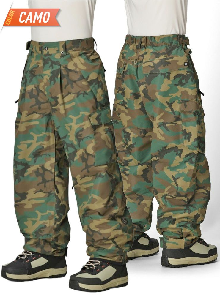 ゆったりとしたスタイルのワイドシルエットカーゴパンツ。 パンツ内のスペースも広く動きやすさがあり、グラトリ、ジバ―、フリーライディングを楽しむ人にもオススメの商品です。