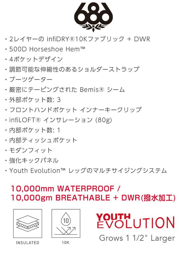 23-24 686 シックスエイトシックス FRONTIER INSULATED BIB パンツ スノーボード つなぎ ビブパンツ